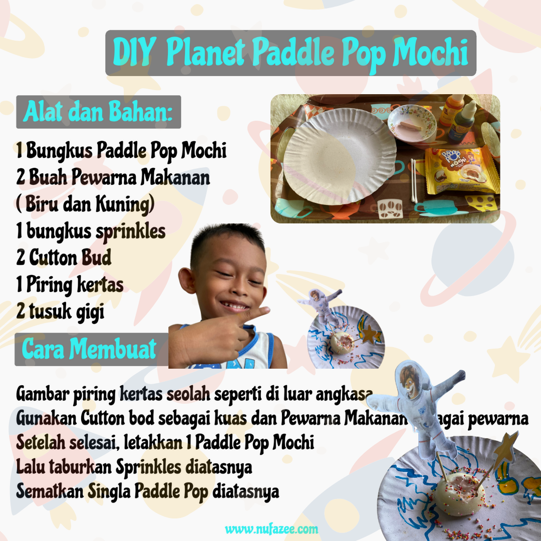 Setertariknya dia dengan hobi baru tersebut, sesekali muncul kata bosan dari bibir kecilnya. Hal ini membuatku terus cari ide bermain. Saat scroll instagram eh Paddle Pop ada event seru nih Liburan Ke Planet Mochi.