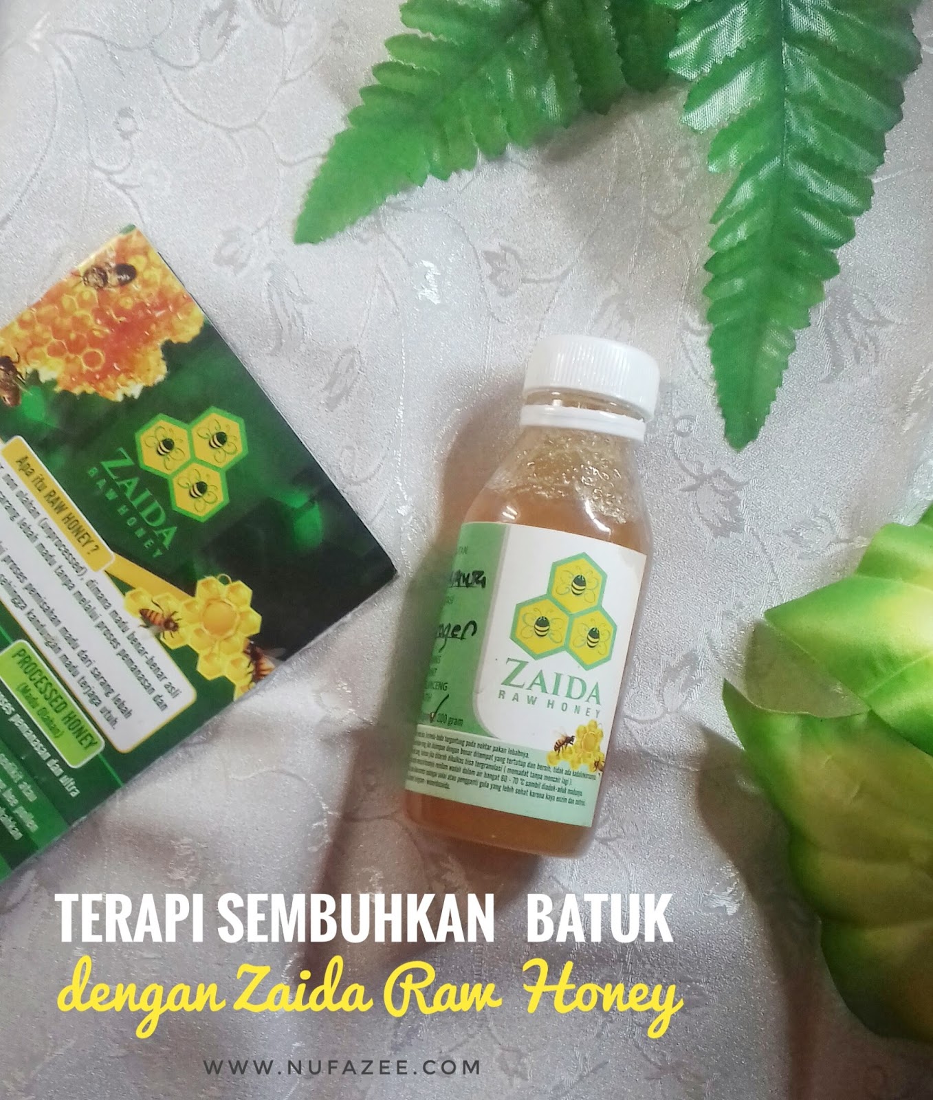 Karena batukku belum sembuh total, untuk itu aku seharusnya konsumsi madu resep herbal yang tertera di brosur Zaida Raw Honey,
