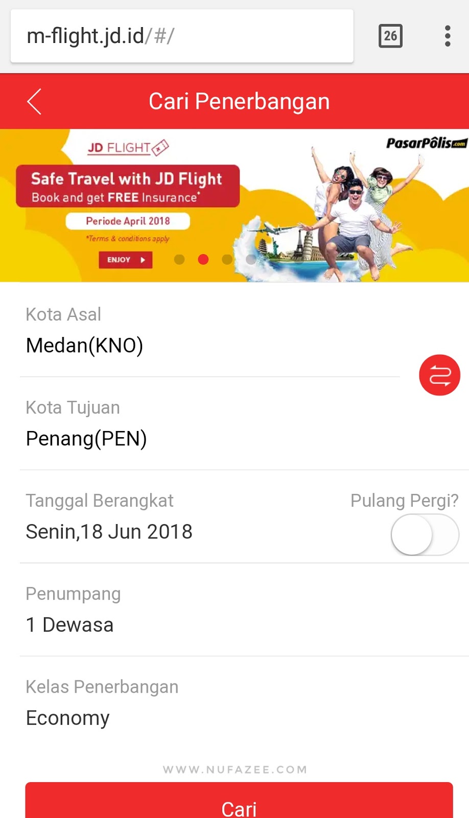 Nah, jadi cobain fiturnya cukup mudah, klik JD Flight, maka akan ada page cari penerbangan.